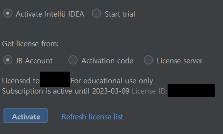 JetBrains 측에서 링크가 하나 올텐데 링크를 클릭하자