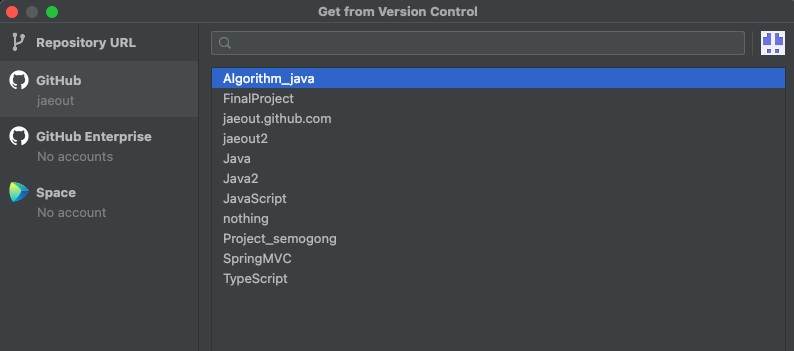 내 깃허브에 있는 Repository 목록이 이렇게 뜬다. 필요한 저장소를 클론하면 된다.
