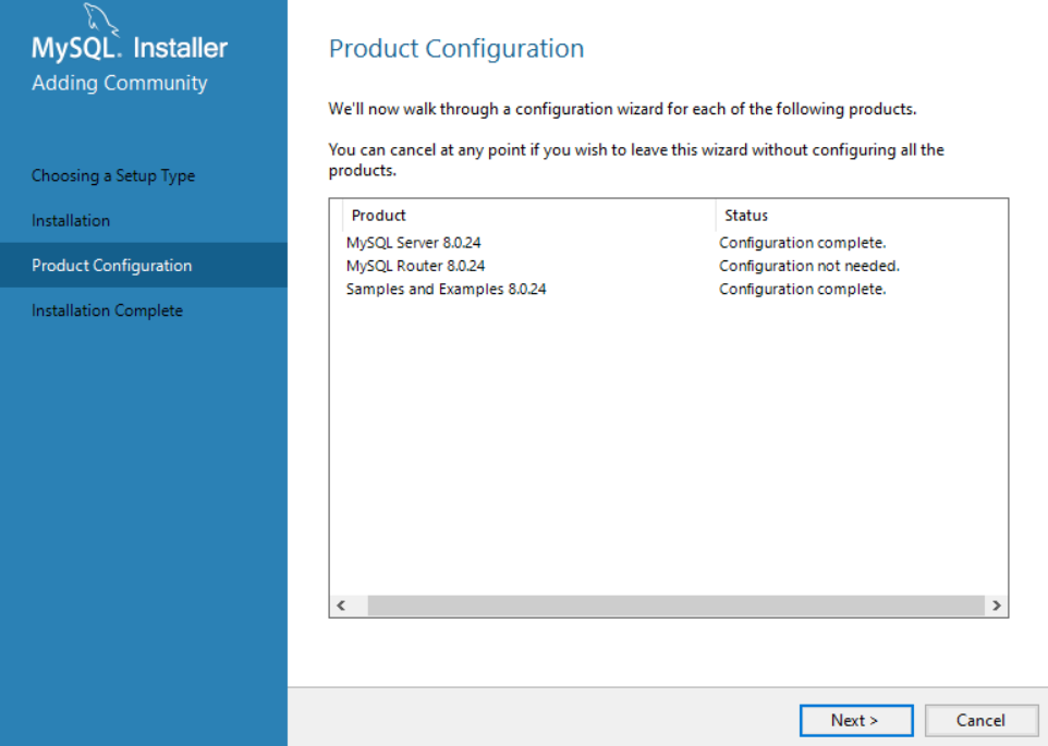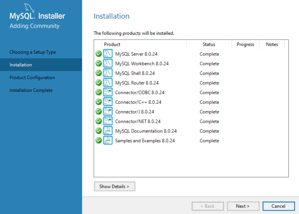 MySQL로 개발, 서버구축 다 할거기 때문에 Setup Type 선택은 개발자모드를 선택해주면 된다