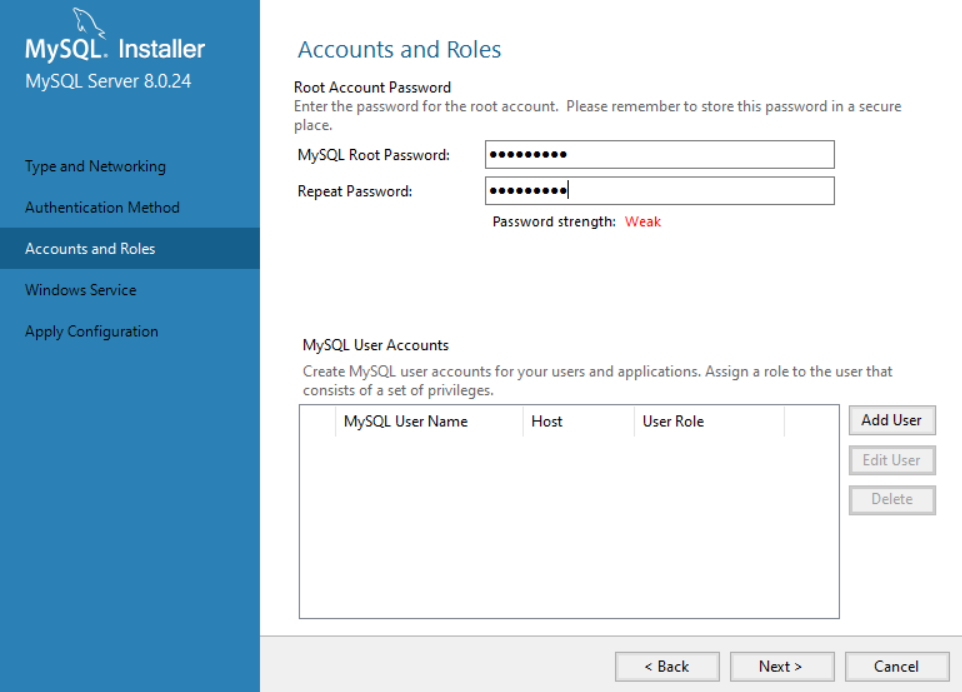 MySQL Root 계정 비밀번호 설정 후 Next