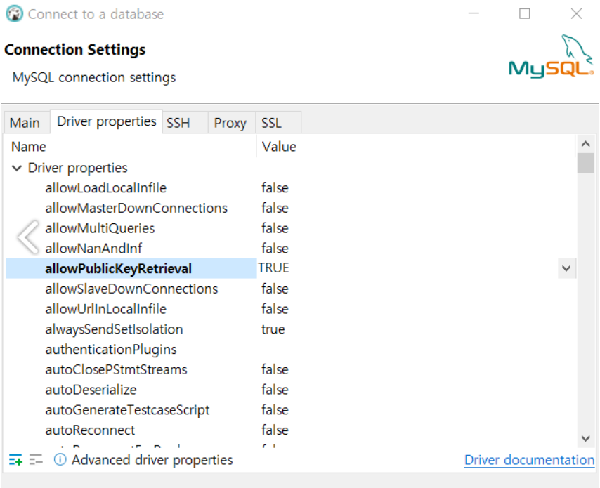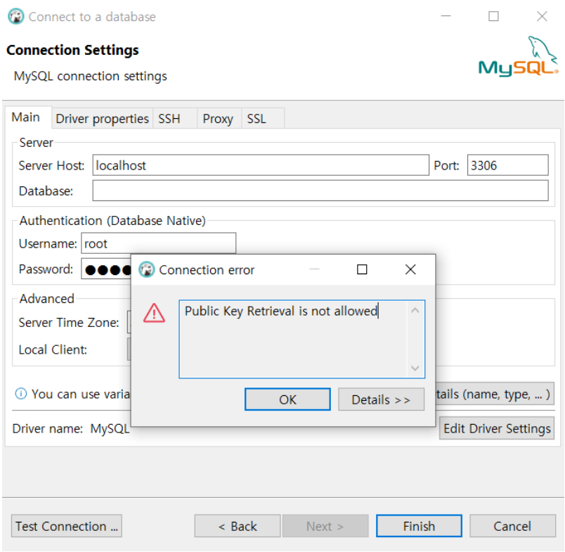 Spring과 MySQL, MyBatis를 연동하던 중 Public Key Retrieval is not allowed이라는 오류가 발생했다